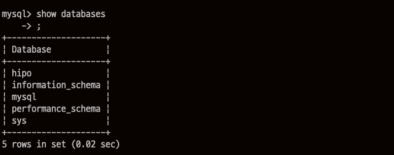 먼저 아래의 명령어로 현재 데이터베이스를 조회한다.